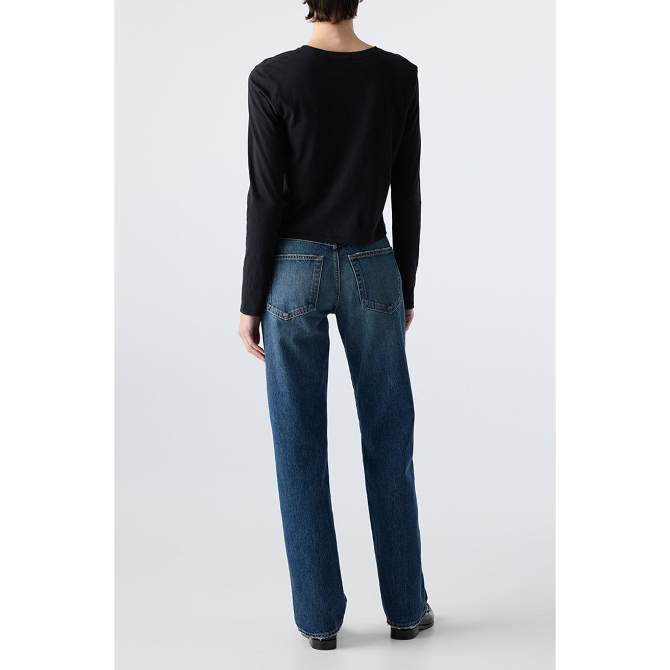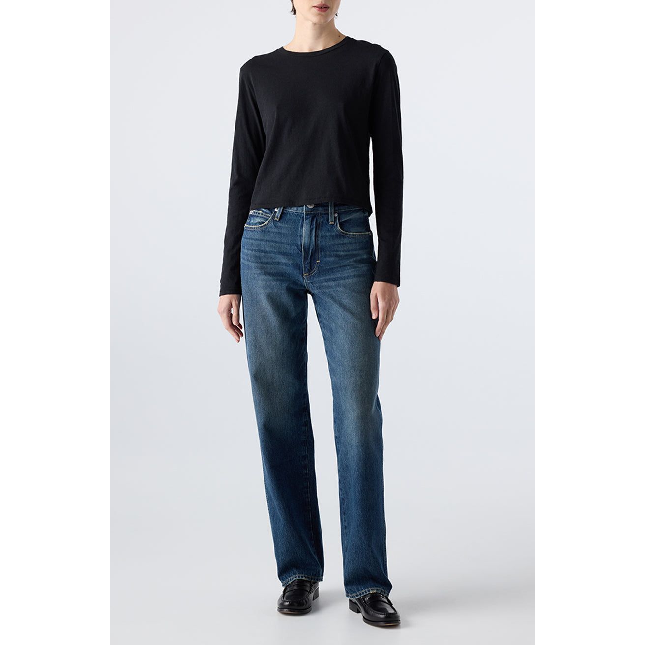 Mid rise classic straight leg jeans.