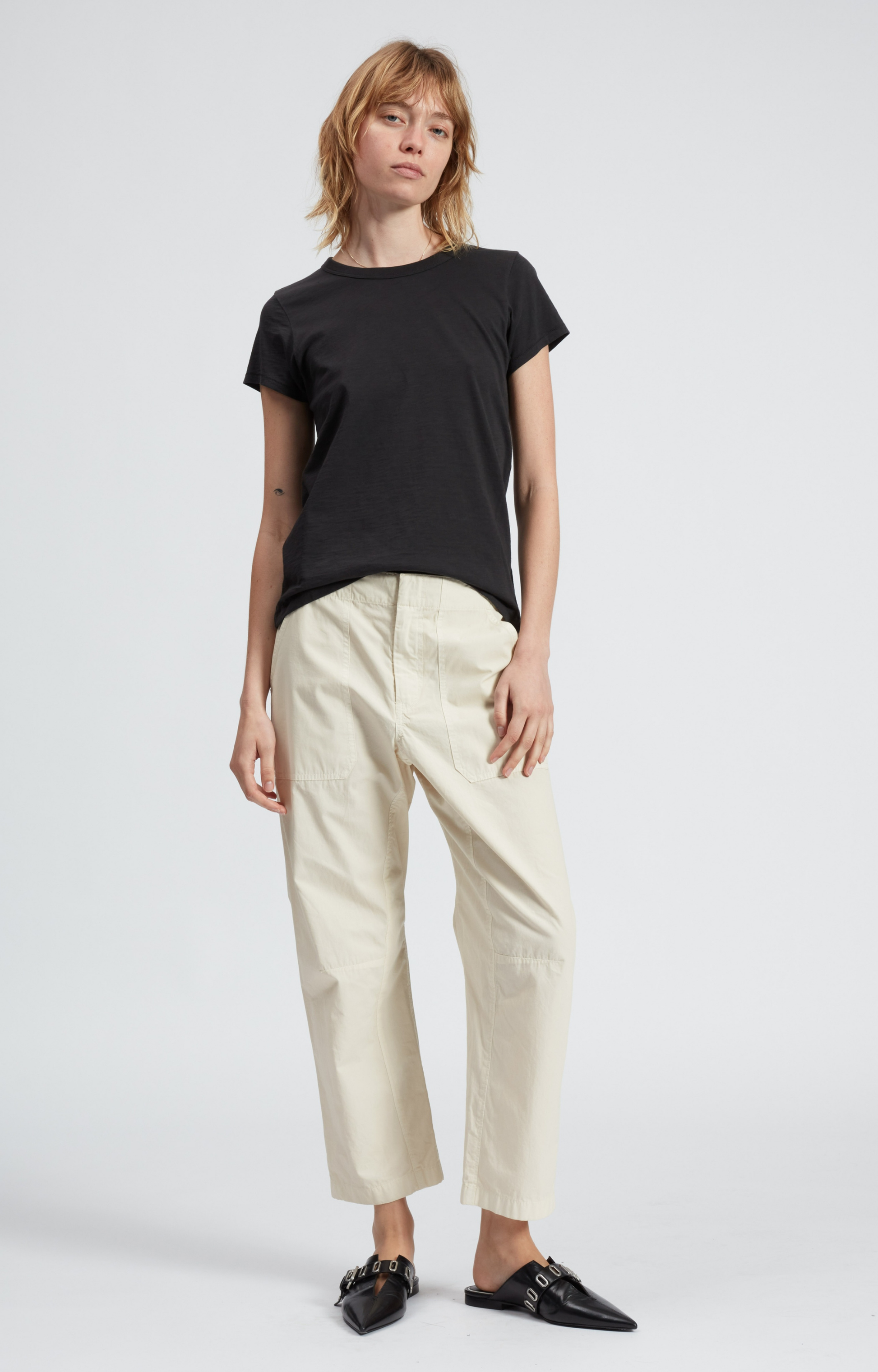 Classic, slightly tailored fit t-shirt with crewneck in R&B's "slub" cotton fabrication.