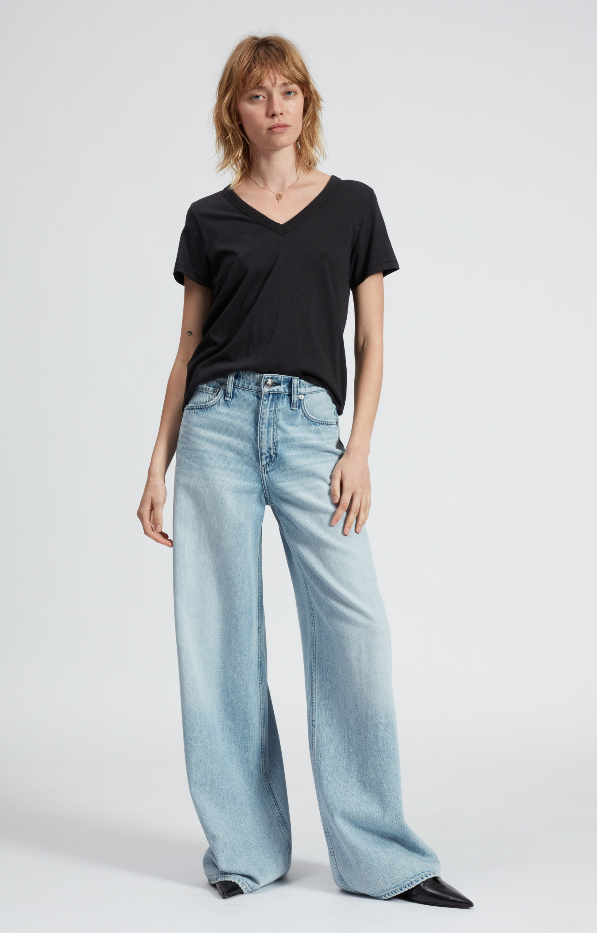 Classic, slightly tailored fit t-shirt with v-neck in R&B's "slub" cotton fabrication.
