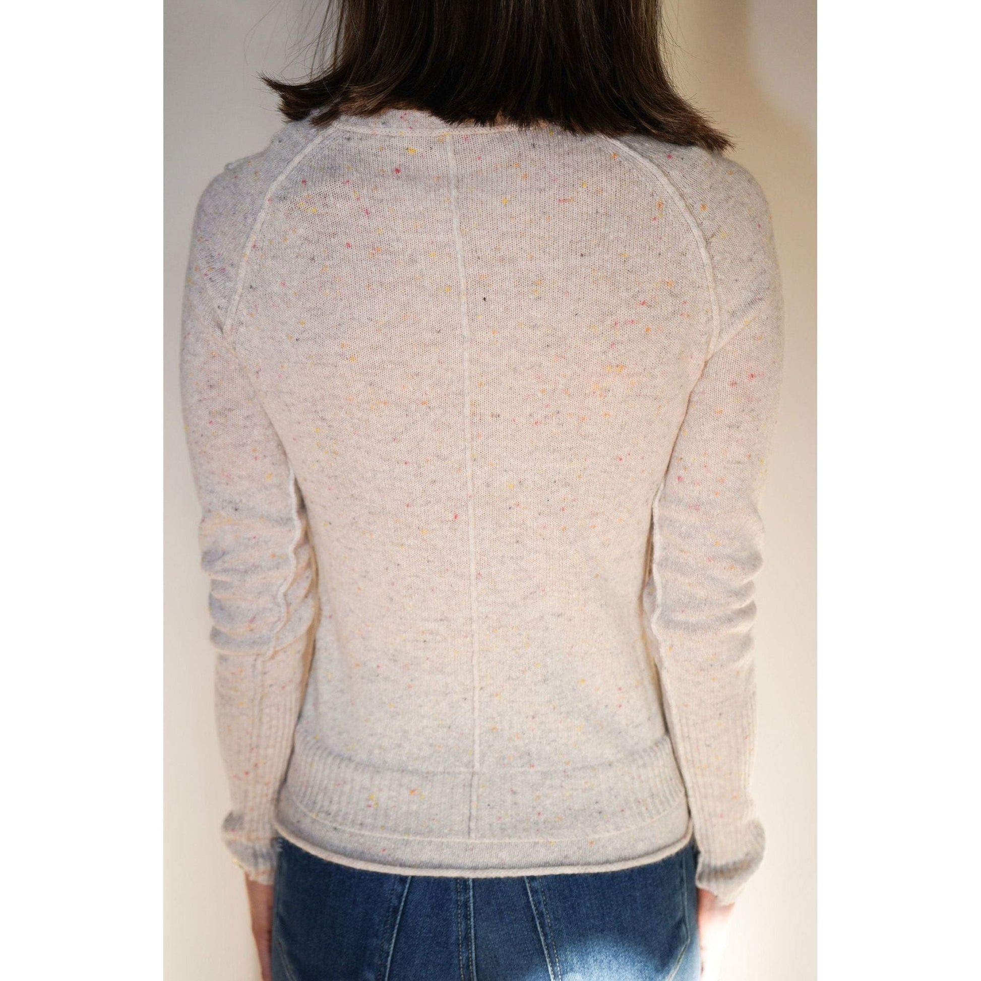Thin cashmere sweater with multicolor flecks and slightly unfinished hem.